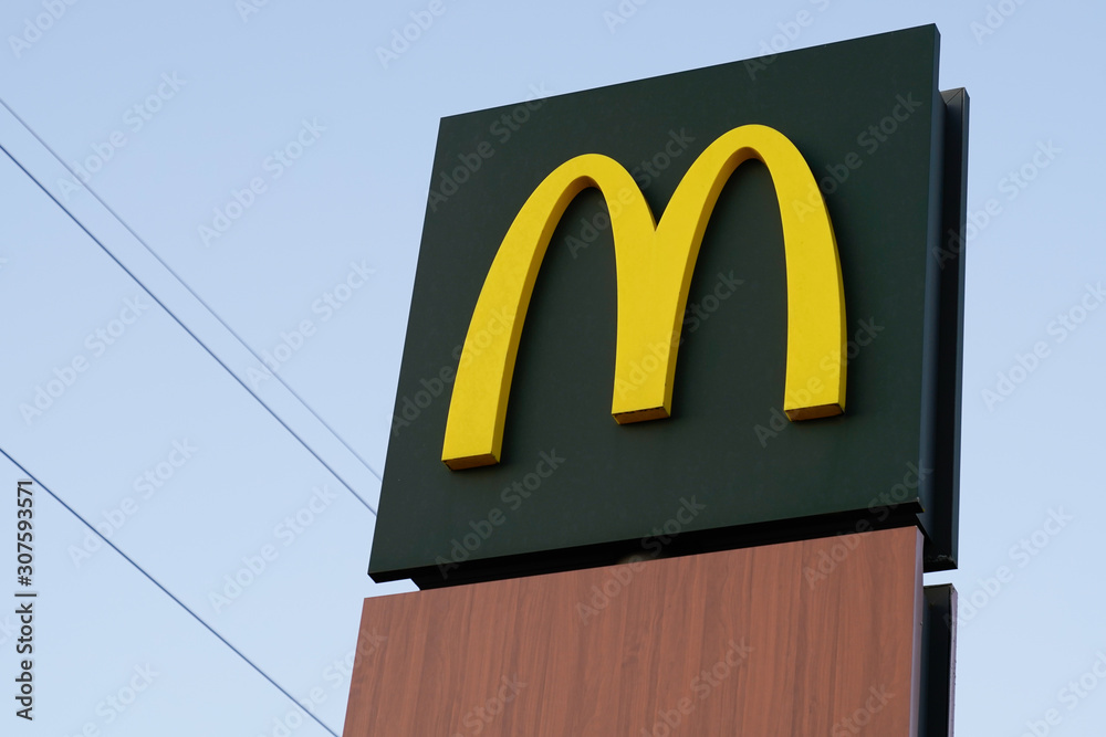 Mcdonalds Logo Exterior Sign Global Chain Business Of Fast Food Restaurant Store Stock Photo Adobe Stock